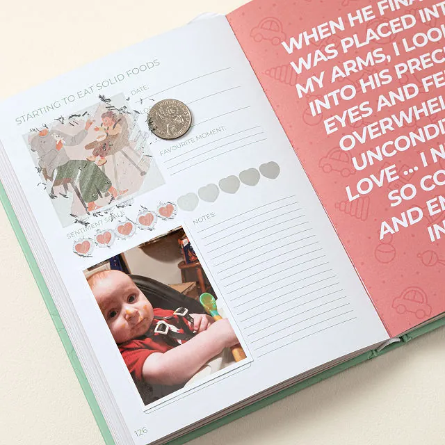 Type: Baby milestone keepsake scratch-off book with space for journaling and photos
