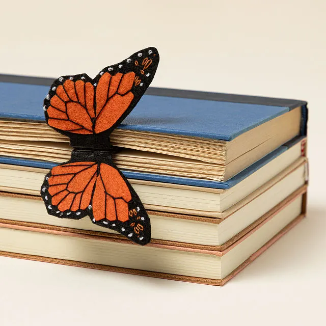 Enhance your reading experience with the 3D Monarch Butterfly Bookmark. This beautifully handcrafted bookmark, designed by Gulnara Kydyrmysheva, brings a vibrant monarch butterfly to your pages. Its felted wool wings peek gracefully from your book, adding color and charm while securely holding your place. Perfect for readers who love a whimsical touch in their literary adventures.