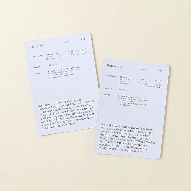 Select a recipe, gather your ingredients, and follow the step-by-step instructions on each card. Whether crafting cocktails for a quiet evening or a lively party, this deck makes mixing whiskey drinks effortless and enjoyable.
