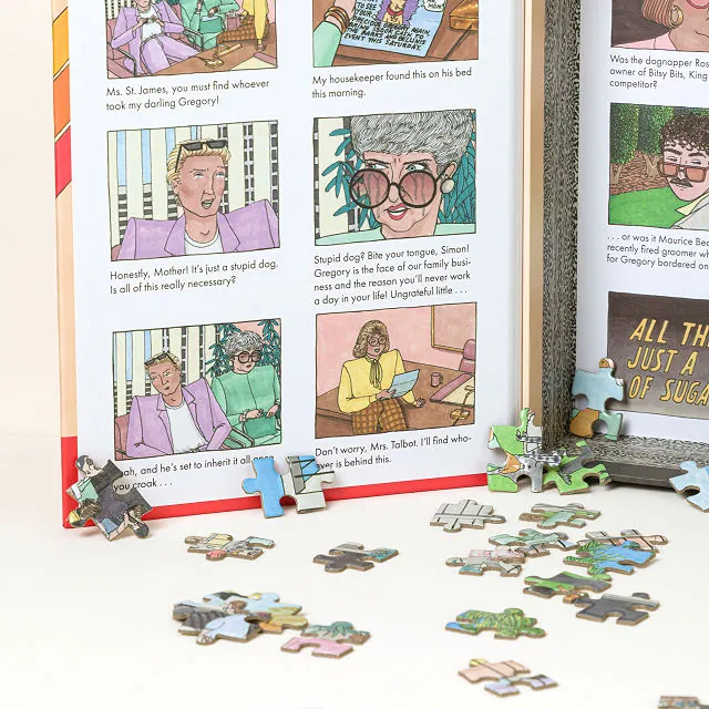 Spread out the pieces, start assembling the scene, and follow the visual clues that emerge as the puzzle comes together. Once complete, study the artwork carefully to crack the case—who took Gregory the Chihuahua? It’s the perfect mix of puzzle-solving and storytelling for solo sleuths or family game night.