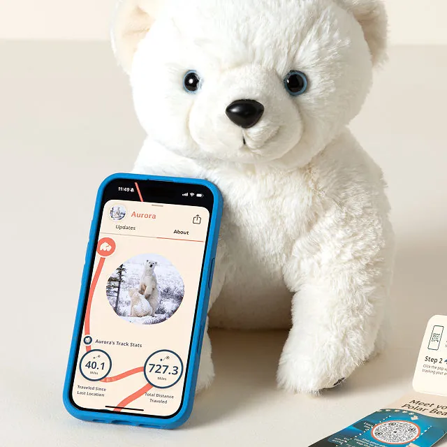 Designed for curious minds and soft hearts, this plush toy turns wildlife education into an adventure. Simply scan the tag to meet your real-life animal friend—learn its name, see photos, follow its journey on a 3D map, and get updates on its life in the wild. With a filling made from recycled plastic bottles, every hug helps the environment, too.
