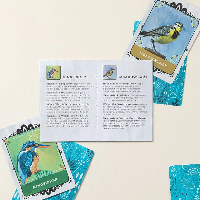 Each card features a reproduction of hand-painted bird art, turning every reading into a visual and spiritual experience.