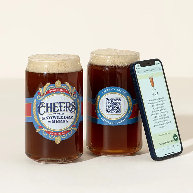 This unique glass features a vintage-style beer label on the front and a surprise on the back: a scannable QR code that unlocks a curated library of daily beer facts. From ancient brewing traditions to modern microbrew quirks, you’ll explore history, styles, and trivia—one day at a time. With its 16 oz capacity and smart design, it’s perfect for your favorite lager, stout, pilsner, or IPA.