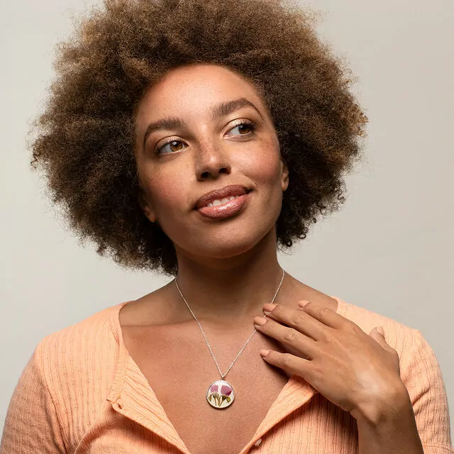 Shari Dixon, based in Tennessee, is the creative force behind the Birth Flower Necklace. With a background in silversmithing and graphic design, Shari’s passion for combining natural elements with jewelry craftsmanship shines through in every piece she creates. Her designs often feature flowers and leaves preserved in resin, capturing the fleeting beauty of nature in timeless jewelry.