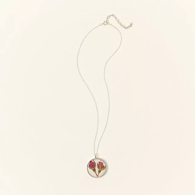 The Birth Flower Necklace stands out for its craftsmanship and deep connection to nature. Designed by Shari Dixon, each pendant features a real flower preserved in resin. The process begins with a silver-plated pewter setting, where natural elements like petals, stems, and leaves are carefully arranged. A layer of resin is applied to protect and immortalize the flowers, ensuring that your necklace will stay as beautiful as the day you receive it.