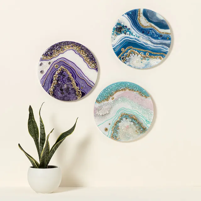 What makes Birth Month Geode Art unique? Each piece is handcrafted, ensuring no two are identical. The use of birthstone-inspired colors adds a personal touch that makes it a meaningful gift.