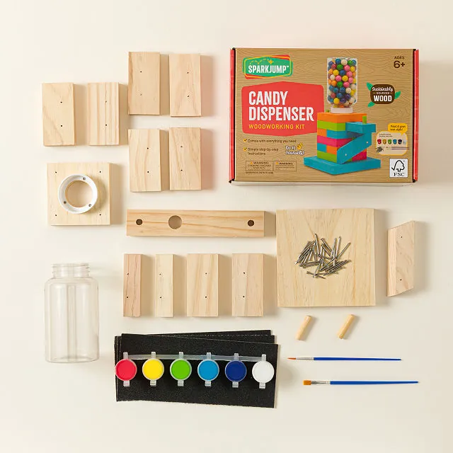Following step-by-step instructions, little builders gain confidence in woodworking while enjoying the excitement of seeing their project come to life. From hammering in the nails to painting the base, every step encourages creativity and problem-solving. The end result is a functional, personalized candy dispenser that provides endless joy.