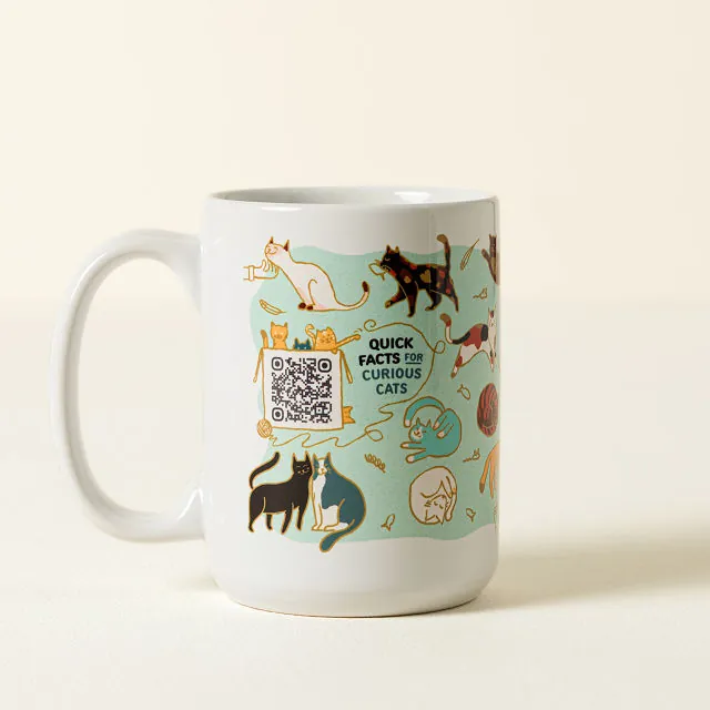 The Cat Lover Interactive QR Mug isn’t just a coffee cup—it’s your daily dose of cat-inspired curiosity. Featuring charming illustrations of iconic cat poses and the phrase “Quick Facts for Curious Cats,” this mug hides a delightful secret: a scannable QR code that unlocks a year’s worth of feline trivia. From fascinating breed details to famous cats in history, every scan offers something new to make you smile. It’s the perfect blend of caffeine and curiosity for cat lovers everywhere.
