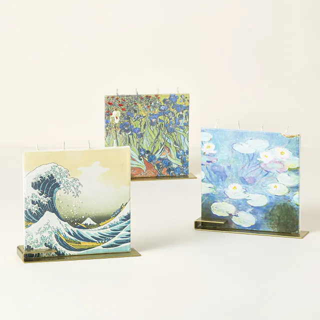 Inspired by Claude Monet’s stunning impressionist works, this flat candle showcases intricate details reminiscent of the beautiful flowers from his home garden in Giverny, France. Each candle is hand-poured and hand-painted with meticulous care, allowing you to enjoy a piece of timeless art.