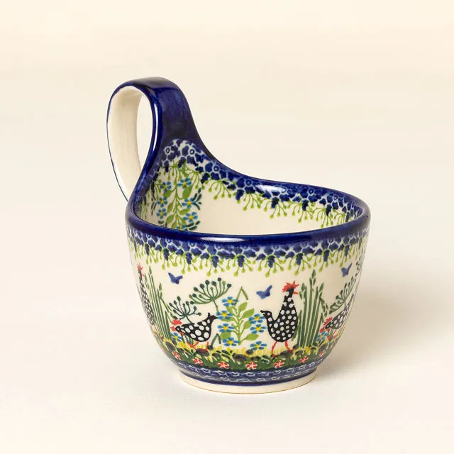 Designed by skilled Polish artisans Jacek and Weronika Kalich, each mug is shaped, smoothed, fired, hand-painted, and glazed over a meticulous 12-day process. Traditional motifs from Bolesławiec pottery add timeless charm, while the deep scoop shape and wide handle make every sip feel cozy and grounded. Whether you’re gifting or indulging yourself, this mug transforms any warm drink into a comforting moment.