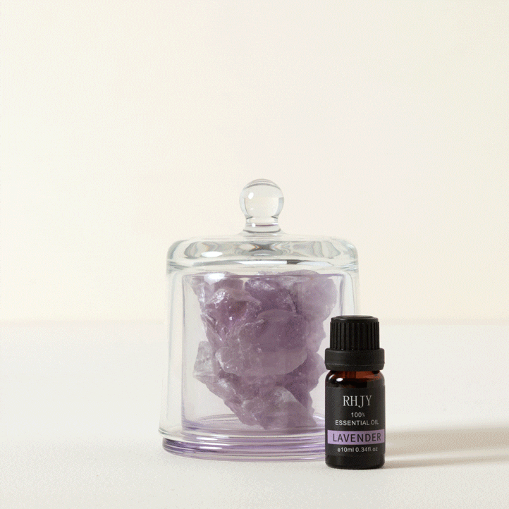 Choose between Amethyst with lavender essential oil for relaxation or Rose Quartz with bergamot essential oil for calming effects.