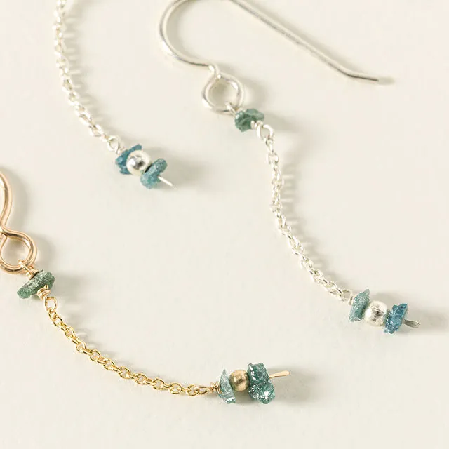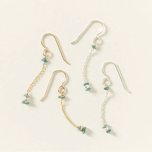 You can choose between sterling silver or 14k gold fill, each complementing the natural beauty of the raw blue diamonds.