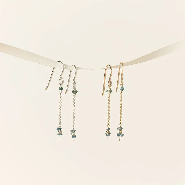 - Material: Sterling silver or 14k gold fill with raw blue diamonds