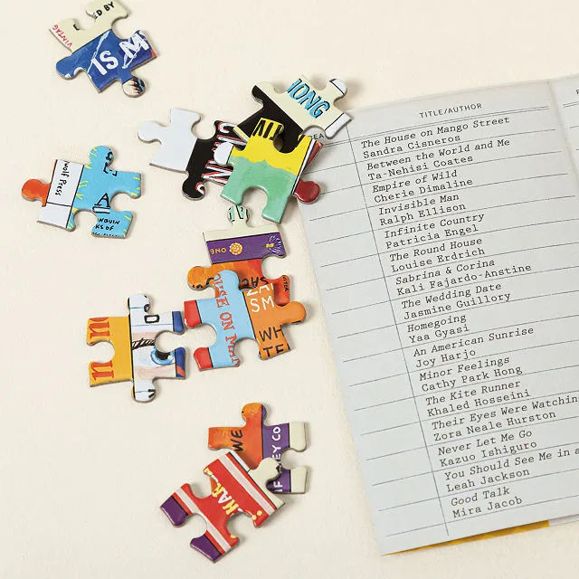Assemble the 500-piece puzzle to reveal the colorful stack of BIPOC-authored books. Use the included reading checklist to explore new titles and broaden your literary horizons. Display the puzzle as art or enjoy reassembling it for repeated fun and inspiration.
