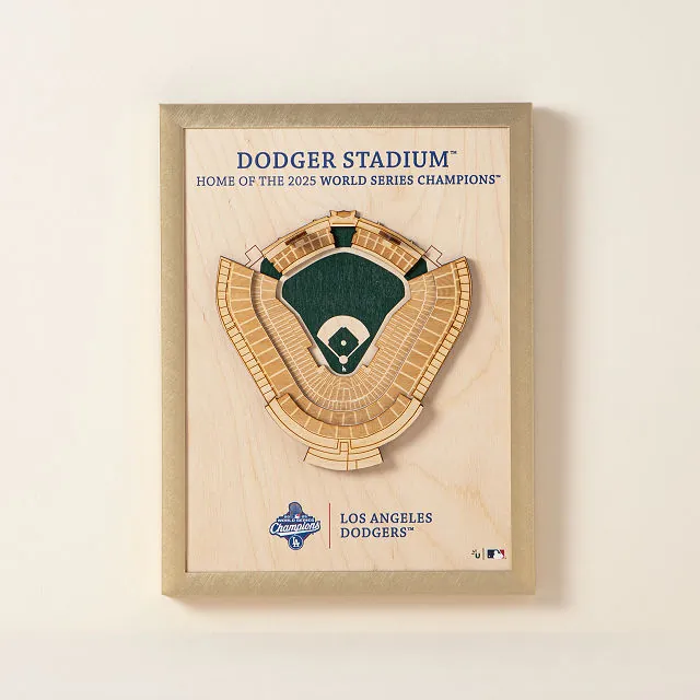 Relive every thrilling moment of the Dodgers’ 2025 World Series victory with this stunning stadium wall sculpture. Layered in pride and framed in gold, this officially licensed MLBâ„¢ collectible captures a bird’s-eye view of Dodger Stadium, featuring team colors, logos, and the glow of victory. Perfect for fans who want to celebrate the championship season in style, it turns any wall into a shrine to Dodger pride.