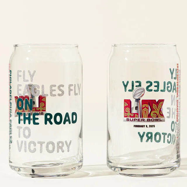 Crafted in the shape of classic soda cans, these glasses blend nostalgia with modern design—perfect for reliving the excitement of Super Bowl LIX. Featuring the Eagles logo, team colors, and the official Super Bowl LIX emblem, each glass tells a story of resilience and pride. Whether displayed in your collection or used to toast another Eagles win, they’re a must-have for every devoted fan.