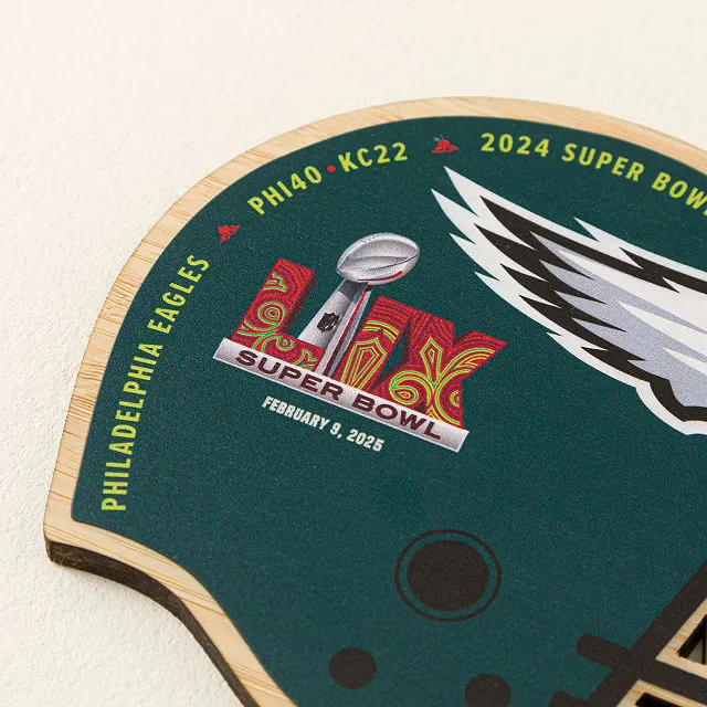 When it’s time to raise your glass in celebration, make sure it rests on a piece of history. The Eagles Super Bowl LIX Champions Coaster Set proudly displays the team’s logo, Super Bowl emblem, and final game score—etched into premium bamboo plywood for a sleek, durable finish. Designed in bold Eagles colors, each coaster pairs perfectly with your favorite drinkware and fan gear, keeping your space protected in championship style.
