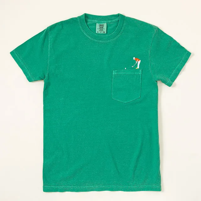 Celebrate your love for golf with the Embroidered Golfer Pocket Tee, a supersoft, stylish tee detailed with a hand-embroidered golfer. Perfect for a day on the course or casual wear, this shirt combines comfort with a playful nod to your favorite sport.