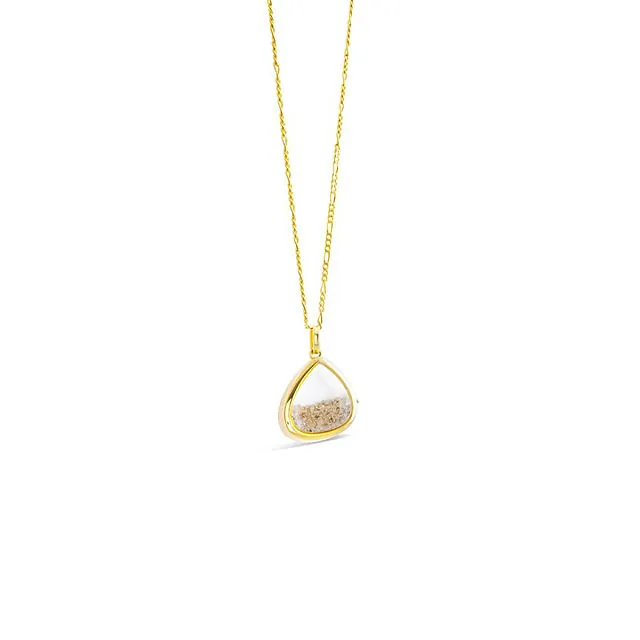 Open the secure hinged clasp to fill the locket with your chosen material—sand, soil, or other tiny keepsakes. Close the locket securely, adjust the Figaro chain from 16″ to 20″ for your preferred fit, and wear it close to your heart. This jewelry piece is designed to keep memories safe while showcasing a beautiful, polished design.