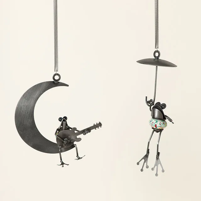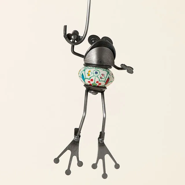 Crafted by metal sculptor Richard Kolb, these garden toads are made from repurposed metal and doorknobs, creating a unique, eco-friendly touch for your home. Each toad is suspended from a spring coil that allows it to bounce and sway, bringing life and movement to your garden.