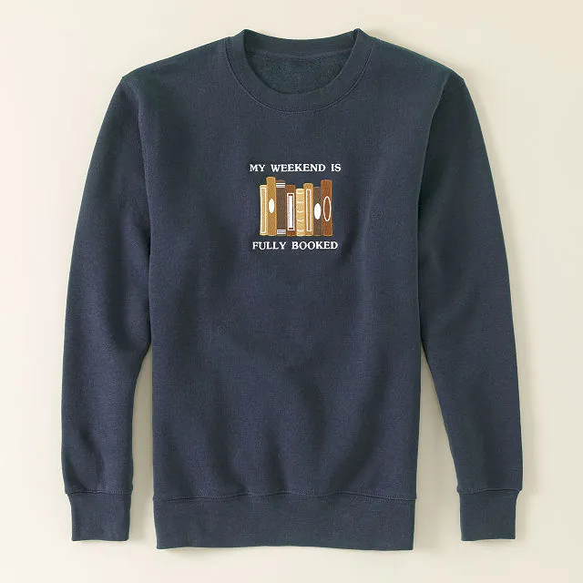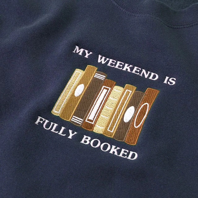This Fully Booked Embroidered Sweatshirt is more than just a cozy layer it’s a statement piece for book lovers. With its intricate book embroidery and the fun phrase “My weekend is fully booked,” it speaks to your love for reading while keeping you stylish. Made from a soft cotton-poly blend, it promises comfort and warmth for hours of lounging and reading.