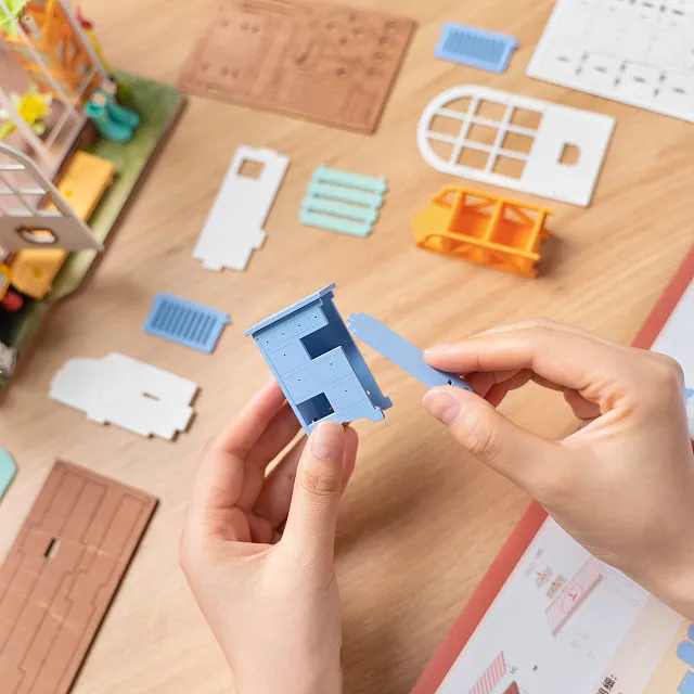 Each piece in the Gardener’s Dream Escape DIY Kit is designed to transport you to a peaceful garden haven. With over 240 precision-cut pieces, you’ll assemble a transparent greenhouse-style home, complete with charming shutters, tiny flower beds, and a wooden Adirondack chair perfect for a doll-sized rest.