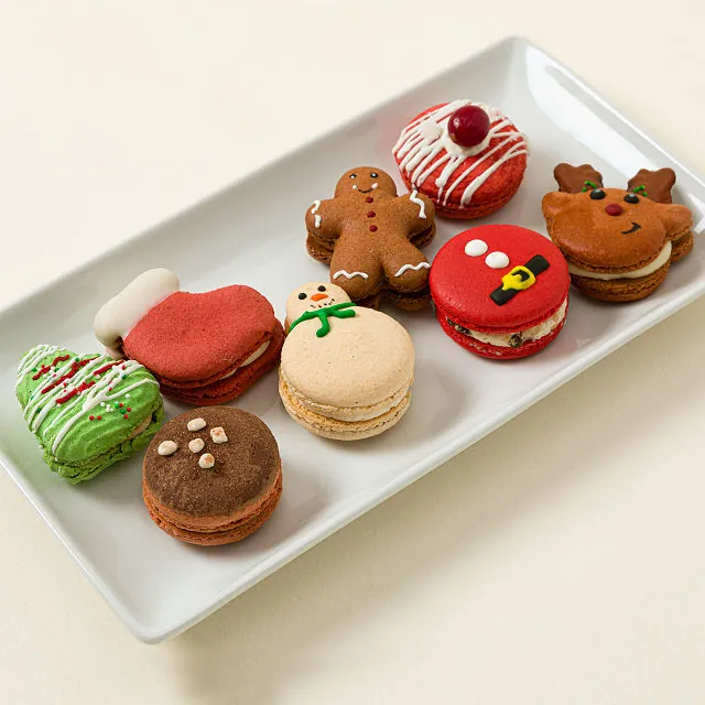 Treat yourself to these giant holiday-themed macarons, the sweetest way to celebrate the season. Each oversized French treat is bursting with festive flavors and handcrafted artistry, making them a perfect gift—or centerpiece—for your Christmas celebration.