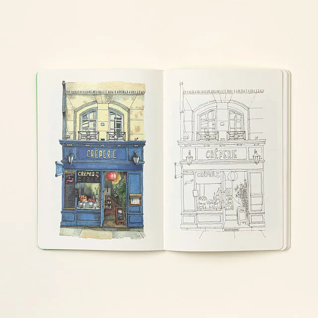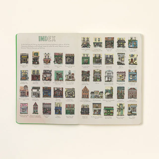 Escape into creativity with the Global Shopfronts Wanderlust Coloring Book — a journey across continents through 45 beautifully illustrated storefronts. From cozy Parisian cafés to bustling New York bakeries, every page invites you to slow down, color, and rediscover the charm of global streetscapes right from home.