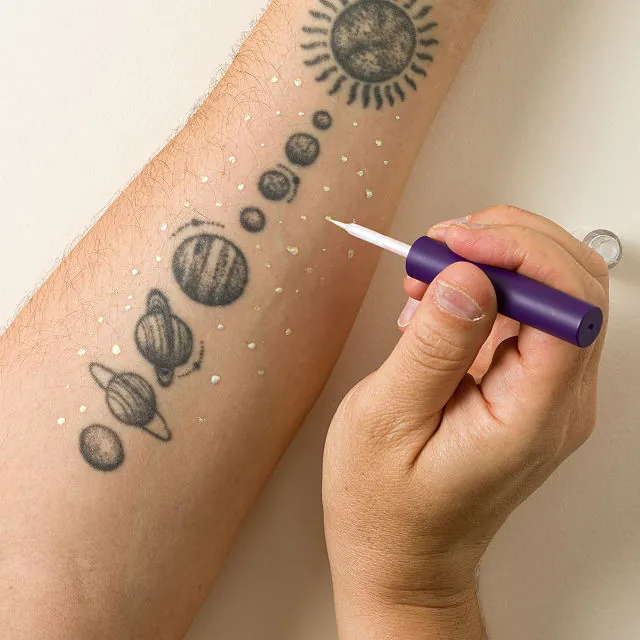 Apply directly to clean, dry skin using the fine-tip brush. Dot or line to create freckles, eyeliner accents, or creative designs. Let dry to waterproof finish. Remove with micellar water or makeup remover when desired.