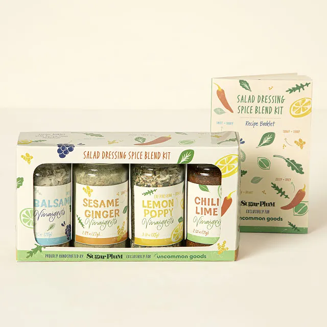 With four distinct dry spice blends—Balsamic Vinaigrette, Sesame Ginger Vinaigrette, Lemon Poppy Vinaigrette, and Chili Lime Vinaigrette—this kit provides all you need for effortless, yet flavorful dressings. Each blend is crafted from high-quality ingredients and comes with a recipe booklet filled with innovative salad ideas. Whether you want a tangy, citrus-infused finish or a hint of sesame and ginger, these vinaigrettes are versatile enough to double as marinades. Perfect for both kitchen novices and seasoned cooks!
