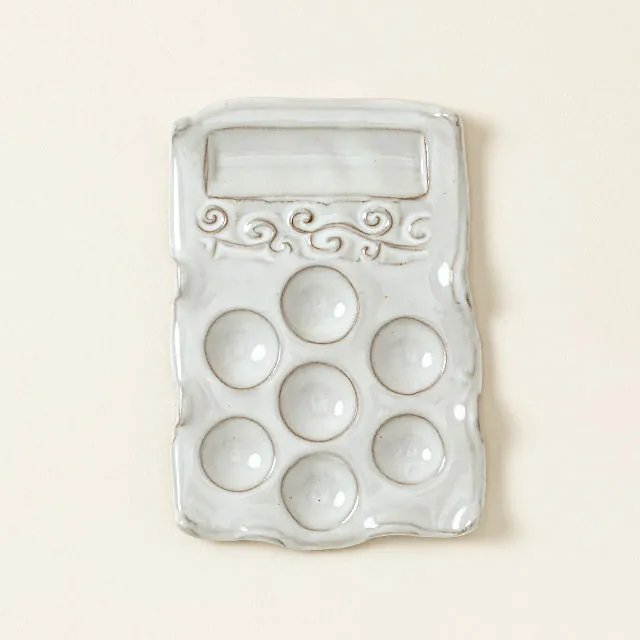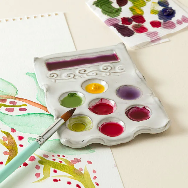 Made from high-fired stoneware and hand-glazed for durability and elegance, this palette is built to last. Its swirl-textured mixing well allows precise brush control and smooth color blending, while seven circular wells keep your pigments organized. Side scalloping provides a convenient spot to rest brushes during your painting sessions. Dishwasher safe and compact, it’s a beautiful addition to any artist’s toolkit.