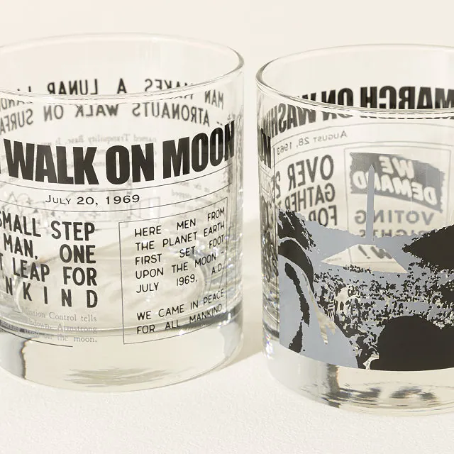 Celebrate world-changing moments with the Headlines of History Whiskey Glasses, a must-have for history enthusiasts and whiskey lovers alike. Each glass is expertly etched with an iconic newspaper headline that commemorates a defining event in history. Perfect for your home bar, a meaningful gift, or simply to enjoy your favorite drink while reflecting on the milestones that shaped our world.