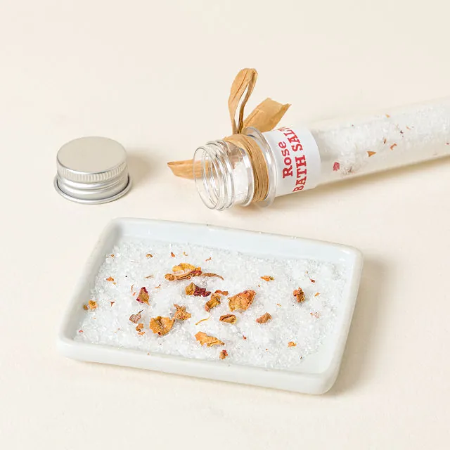 Contents: 3 bath salt tubes (Lavender, Rose, Lemon/Rosemary), 2 oz. each