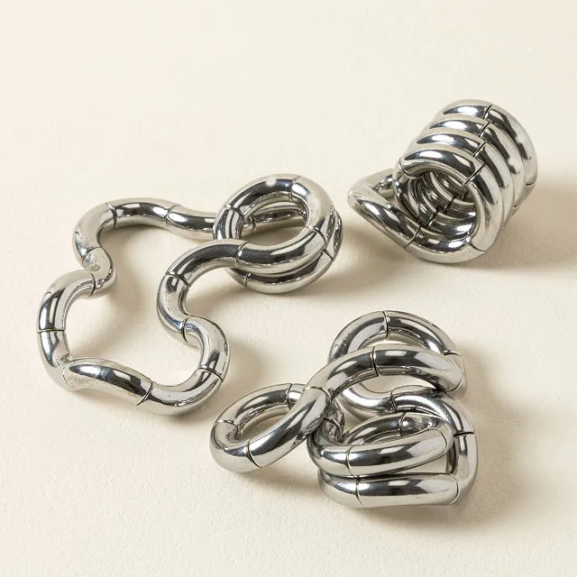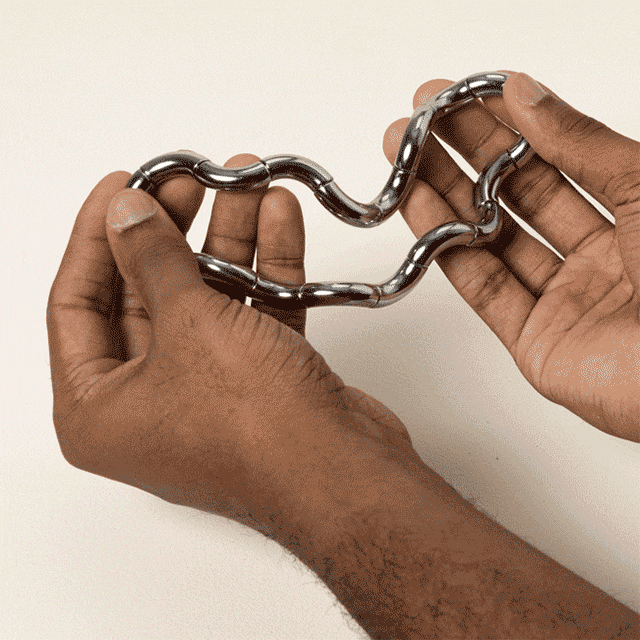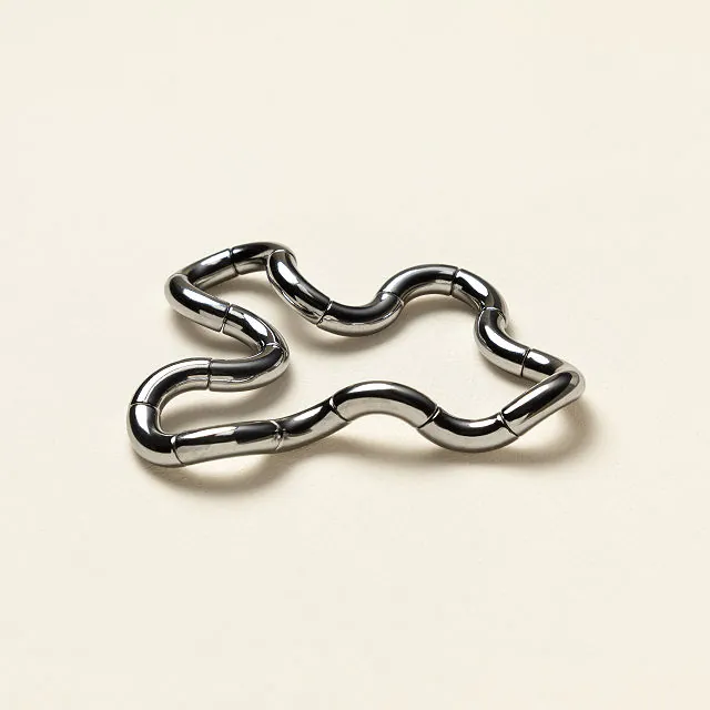 At first glance, the Infinite Tangle Metal Sculptural Fidget appears as a minimalist metal artwork. But in your hands, it transforms—18 interlocking metal segments twist and fold into infinite configurations, shifting with each subtle motion. The chrome-like surface feels cool to the touch and gently warms as you play, adding a soothing sensory layer that quiets the mind. Use it during meetings, meditation, or as a modern accent piece for your home or office.