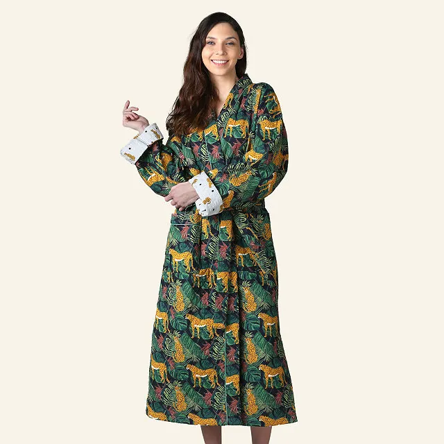 Jungle Print Cotton Quilted Robe – A Luxurious Tropical Escape