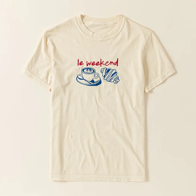 Savor Leisurely Mornings with the Le Weekend Embroidered T-Shirt
