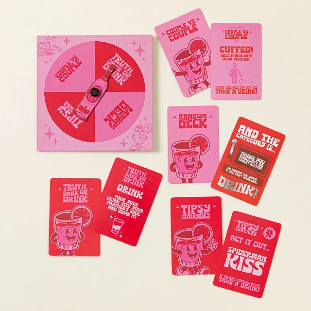 Set up the board game–style spinner and deal the dry-erase cards to each couple. Take turns drawing prompts, completing challenges, and keeping track of points. The game flows easily, bringing out bold moves, playful banter, and spontaneous fun. Whether it’s a familiar crew or a pair of new friends, it’s an easy-to-learn, fun-to-play activity that guarantees laughter and connection.