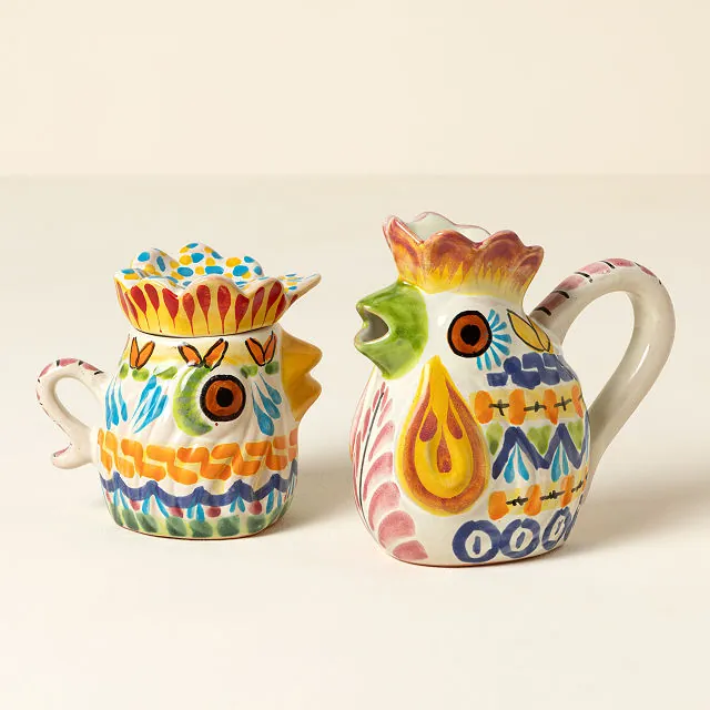 Elevate your morning routine with the colorful Majolica Rooster Creamer & Sugar Jar. Add a piece of handcrafted Mexican charm to your kitchen today!