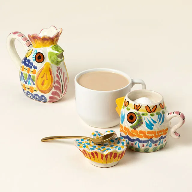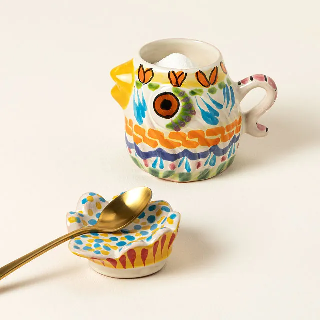These decorative yet functional pieces are perfect for everyday use or as a cheerful addition to special breakfasts and brunches. Simply pour cream or scoop sugar while enjoying the artisanal artistry and folk-inspired details.