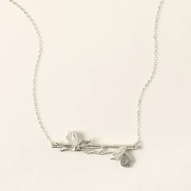 The necklace is handmade by Nancy Nelson in Maryland, using her passion for nature and metalsmithing.