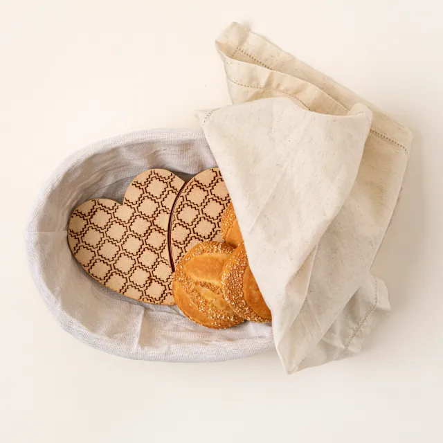 This set combines practicality with stunning design. The hand-pressed stone is delicately etched with intricate patterns, making it not only a functional tool but also a beautiful addition to your table. The set is available in two options: a single heart tile with a linen bread towel, or a double heart tile set with a towel and cloth-lined basket. Perfect for both personal use or as a thoughtful gift, this handmade set is sure to impress.