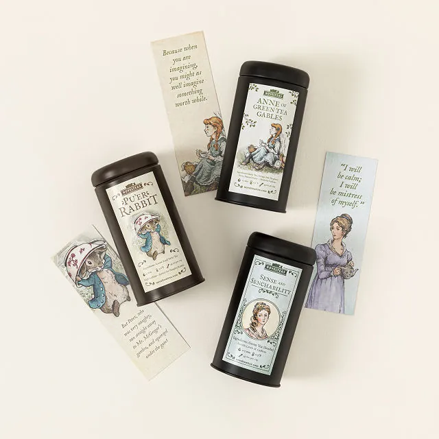 These whimsical teas offer a fusion of literature and flavor. Each metal tin features original artwork inspired by classic novels, and organic, book-themed blends deliver a unique tasting experience. Available as a trio or as single tins, these blends make literary indulgence accessible anytime.