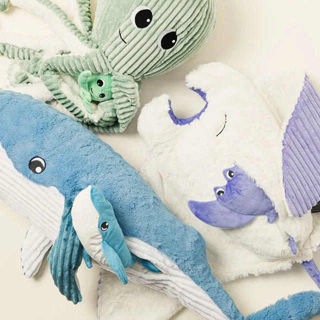 - Large and huggable: The Manta Ray and Blue Whale mothers are over two feet long, providing a comforting size for children.