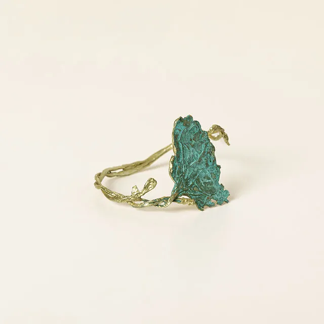 Capture the essence of nature with the Patina Botanical Bracelet, a stunning piece that embodies the beauty of a newly sprouting leaf. Inspired by the delicate beginnings of a leaf’s journey, this bracelet adds a touch of natural elegance to your everyday style. Handcrafted with care, the Patina Botanical Bracelet is not just an accessory, but a representation of nature’s enduring growth.