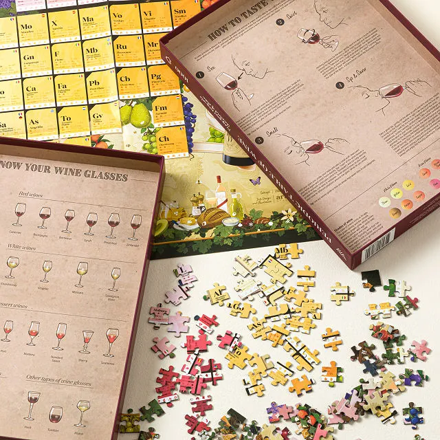 Assemble the 1,000 pieces to explore wine varieties and their flavor profiles. Use the included guides to enhance your tasting experience and display the full-size poster once complete. Wipe the box and poster with a cloth to keep the materials in pristine condition.