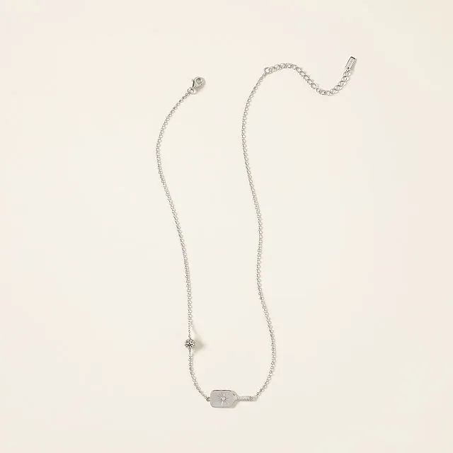 Don’t get pickled: Stay in the game with this charming paddle and pickleball necklace. Crafted to capture the dynamic energy of pickleball, this necklace is based on an original illustration featuring a paddle pendant and a cubic zirconia “ball” in a starburst design. Every detail brings the thrill of pickleball right to your everyday style.