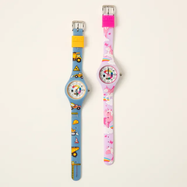 These watches use vibrant colors and animal icons to represent the hours and minutes, creating a simple, yet effective way for children to learn time.