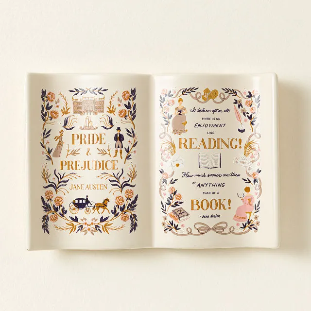 Organize your small essentials with charm and literary flair using the Pride and Prejudice Trinket Dish. Shaped like an open book and adorned with artwork inspired by Jane Austen’s classic novel, this ceramic dish brings elegance and whimsy to any tabletop. It’s perfect for holding jewelry, office supplies, or tiny treasures while paying homage to one of literature’s most beloved stories.