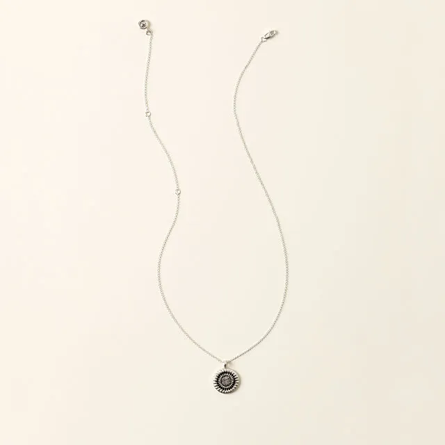 The pendant is crafted from oxidized, recycled sterling silver, giving it a rich and unique finish.