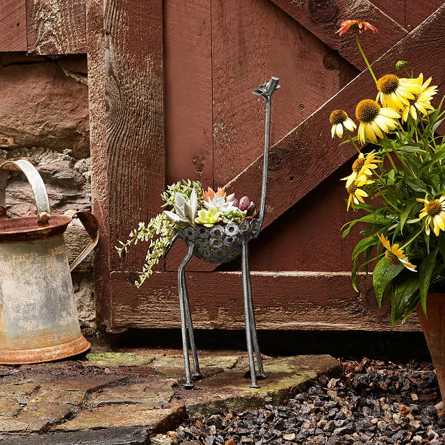 This planter offers both sustainability and style. Created from recycled machine parts, each giraffe is a testament to the transformative power of art. The detailed design, welded and crafted with care, gives each planter a one-of-a-kind appeal that complements both indoor and outdoor spaces. The planter’s unique form not only enhances its artistic value but also makes it a practical holder for keys, jewelry, or other small items.